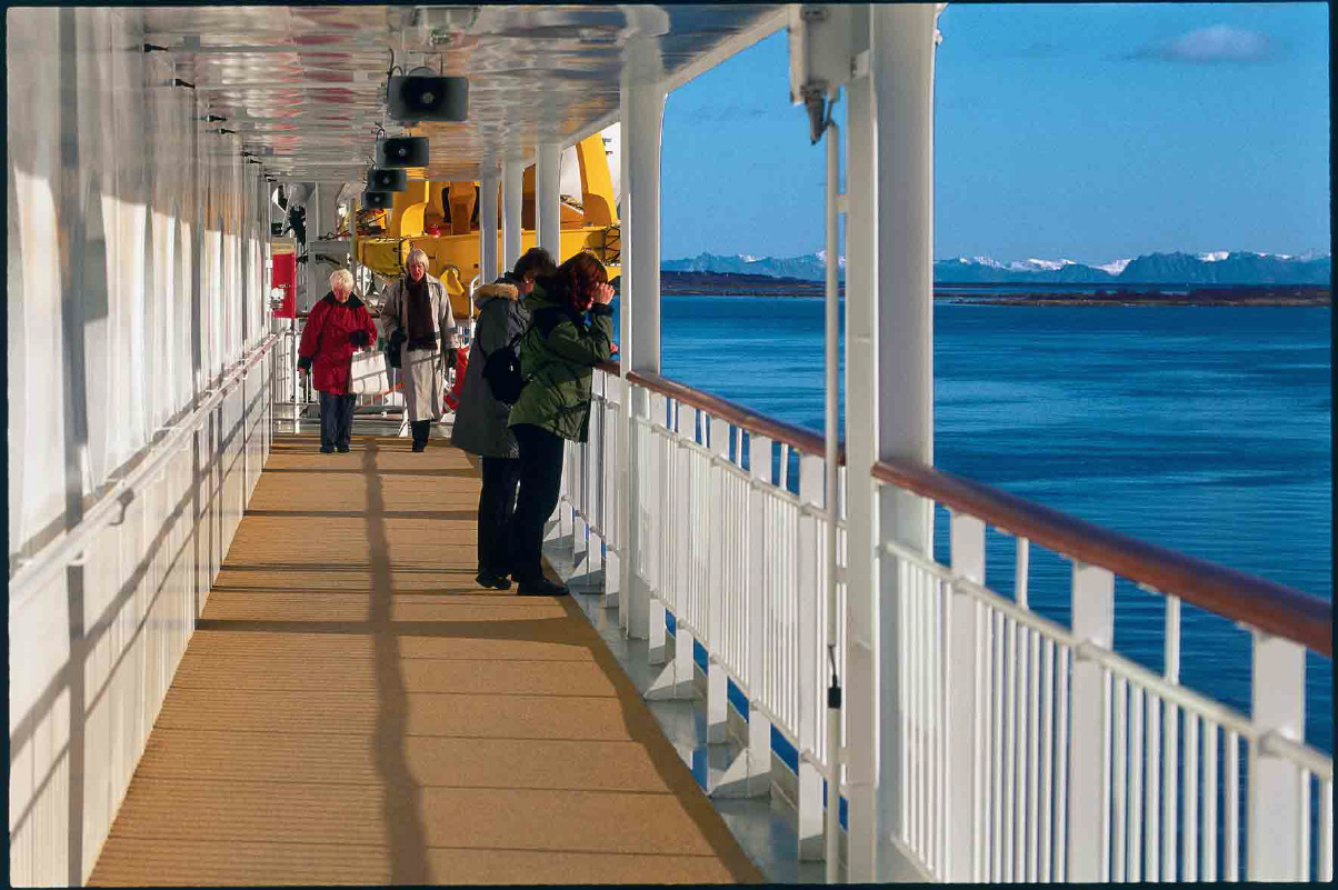 Ihr Hurtigruten Schiff liegt schon im Hafen. Die Einschiffung beginnt um 17.00 Uhr (im Winter um 18.00 Uhr), und pünktlich um 20.00 Uhr (im Winter um 22.30 Uhr) geht die Fahrt durch den Hjeltefjord, von dem schon die Wikinger zu den Shetlandinseln starteten, los.